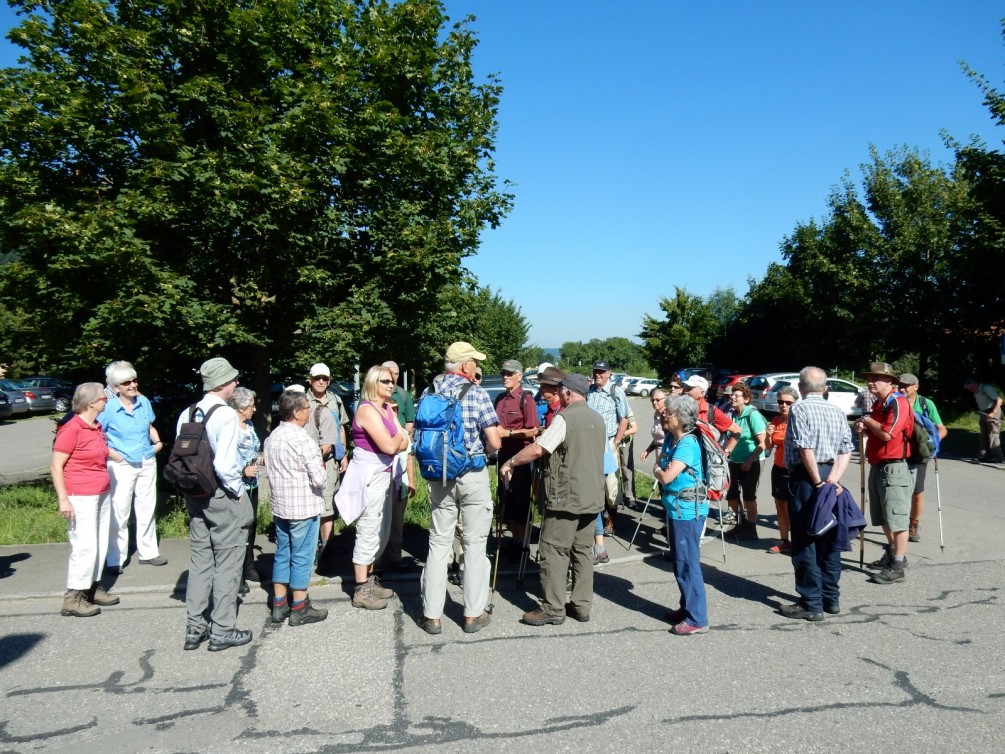 Dies waren die Schwerpunkte einer Wanderung des Eninger Albvereins am letzten Sonntag. 44 Wanderer starteten am Bahnhof Wasserfall Bad Urach, wohin uns Bus und Zug gebracht hatten. Bei strahlendem Sonnenschein ging es am Hang des Runden Berges im Schatten hinauf zum Gütersteiner Wasserfall. Über die Geschichte der ehemaligen Kartause, die hier im Jahr 1439 entstand, berichtete WF Hans-Peter Hofmann, ebenso über den Beginn der Albwasserversorgung im Jahr 1715 mit einer Wasserhebeanlage zum Fohlenhof. Ein kurzer steiler Anstieg brachte uns auf die Albhochfläche, zum Fohlenhof. Hier wurde die Pferdehaltung im Gestütshof St. Johann, in den Vorwerken Güterstein und Fohlenhof erläutert. In kurzer Zeit waren wir dann am Wanderheim unserer Ortsgruppe, wo wir mit Musik begrüßt wurden und die Mittagsrast einlegten. Danach ging es schwitzend bergab nach Eningen, die Sonnenhitze hatte uns erreicht. Zum Kaffeetrinken war jeder wieder zuhause, ein herrlicher Sommerwandertag lag hinter uns.